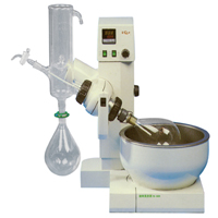 旋轉(zhuǎn)式蒸發(fā)器是采用旋轉(zhuǎn)蒸發(fā)瓶(燒瓶),增大蒸發(fā)面積在減壓下置于水浴中一邊旋轉(zhuǎn),一邊加熱的裝置,使瓶?jī)?nèi)溶液擴(kuò)散蒸發(fā)。是化學(xué)工業(yè),醫(yī)藥工業(yè),高等院校和科研實(shí)驗(yàn)室等單位用于制造及分析實(shí)驗(yàn)賴以濃縮,干燥,回收等較為優(yōu)質(zhì)的常用基本儀器。